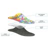 Основой стельки является пружинящий каркас из высокопрочного пластика с высоким внутренним бортиком, удерживающий стопу в правильном положении.