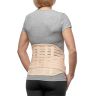 Бандаж изготовлен из эластичных воздухо- и влагопроницаемых материалов, состоит из широкого пояса на застежке с дополнительной эластичной стяжкой, с четырьмя ребрами жесткости в широкой задней части.