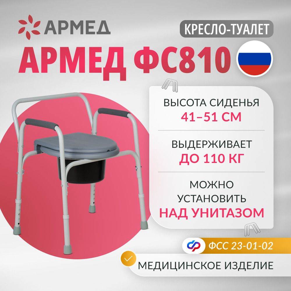 Описание КРЕСЛО-ТУАЛЕТ с санитарным оснащением "АРМЕД" ФС810 (пр-во Россия)