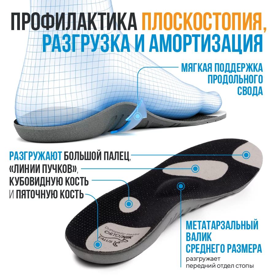 - зоны разгрузки в области плюсневых костей межфаланговых суставов и кубовидной кости;