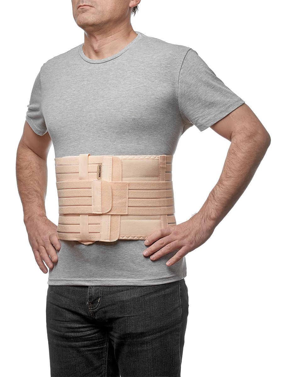 Бандаж изготовлен из эластичных воздухо- и влагопроницаемых материалов, состоит из широкого пояса на застежке с двумя ребрами жесткости по бокам и съемного пелота, крепящегося к поясу с помощью эластичной лямки на застежке. Изделие обеспечивает профилактику ущемления или прогрессирования грыж при физической работе, натуживании, при слабости мышц брюшной стенки. Обеспечивает оптимальные условия для формирования рубца после операций на органах брюшной полости или после кесарева сечения.