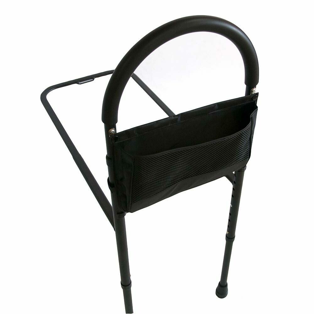 Поручень выполнен из стали, оборудован ремнем для пристегивания к кровати. Ножки оснащены резиновыми наконечниками против скольжения.